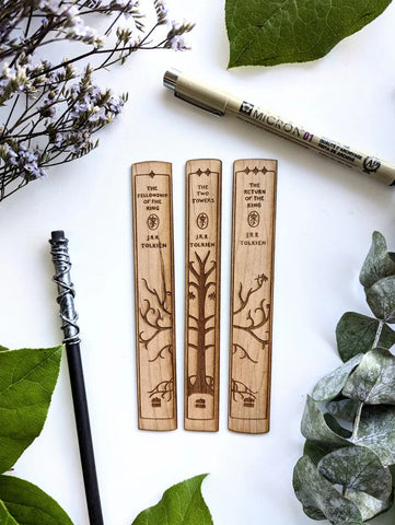 LotR Book Spine Trio | Tolkien | Engraved Wooden Bookmark